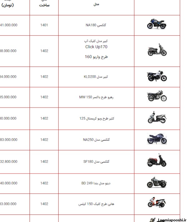 عکس موتور سیکلت و قیمت