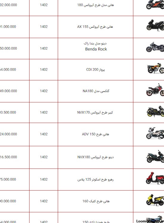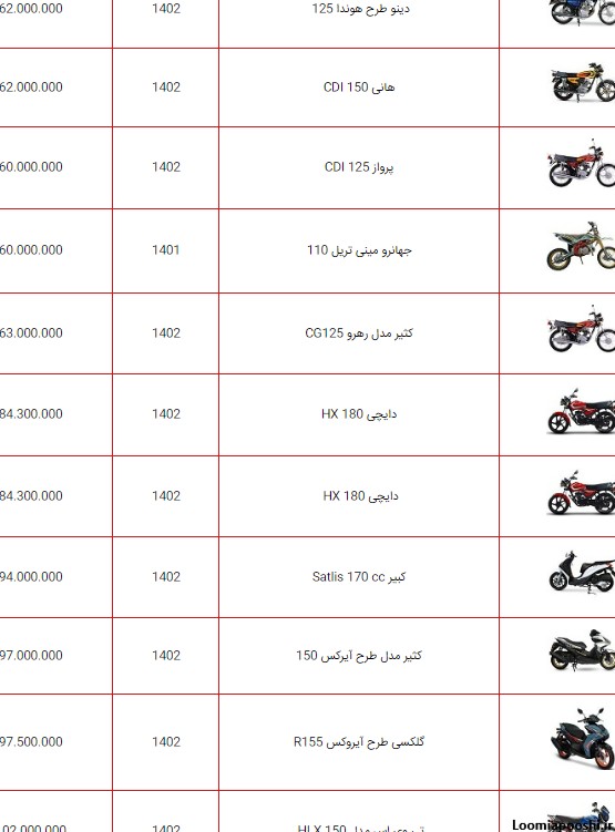 قیمت انواع موتورسیکلت در بازار، ۲۵ آذر ۱۴۰۲
